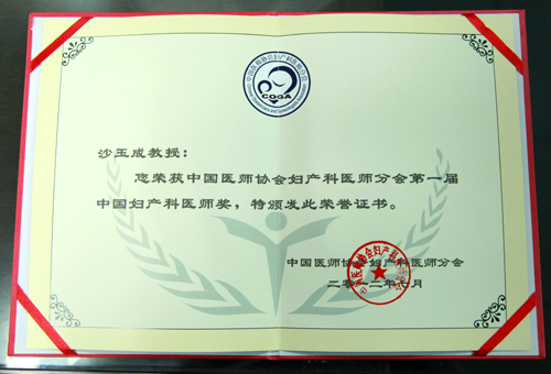 “中国妇产科医师奖”是由中国医师协会批准,中国医师协会妇产科分会发起设立的表彰中国妇产科医师、护士及相关医疗工作者的奖项,也是目前唯一的针对中国妇产科医师个人的表彰奖项,是妇产科领域的最高荣誉。