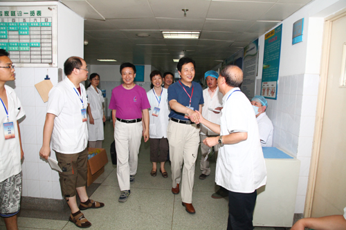 7月11日下午,位于安医大一附院长江路门诊部的2012年全国口腔类执业医师考试正在紧张的经历考试最后一天,院党委书记梁朝朝在党委工作部、医务处及口腔科相关负责人陪同下进行巡考,对高温天气坚持在考场第一线的考官、工作人员及考生们表示感谢和慰问。