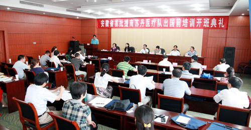 6月25日上午,安徽省首批援南苏丹医疗队出国前培训开班典礼在合肥召开。卫生厅厅长高开焰作动员报告,院长余永强出席会议并作代表发言。
