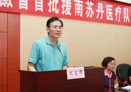 院长余永强在发言中指出,援南苏丹医疗工作是我国对外工作的重要组成部分,是一项具有长期战略意义的政治任务。在省卫生厅的统一部署下,我院作为首批援建医疗队承担的是为国争光的使命,援建工作虽然艰巨,但无限光荣。援建队员克服种种困难,接下这一具有光荣传统的接力棒,其代表医院党委、行政向大家表示感谢和由衷的敬意。