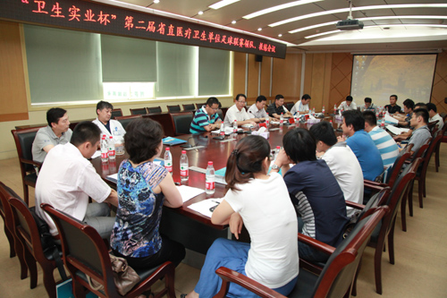 6月25日下午,医院召开“卫生实业杯”第二届省直医疗卫生单位足球联赛领队、教练会议。会议由团委书记黄尧主持,省卫生厅厅直团工委书记计承县、院党委副书记刘全礼参加会议并讲话,