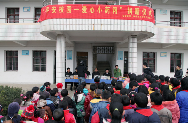 由安徽商报、安徽省希望工程办公室、安医大一附院联手举办的“平安校园”公益活动,3月9日正式启动,我院捐赠的“爱心小药箱”、《百名专家讲科普》书籍,送到了巢湖烔汤镇花集希望小学。党委委员、党委工作部部长高长林代表医院出席捐赠仪式,并在捐赠仪式上讲话。