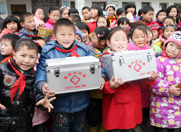 在捐赠仪式上,高长林部长说,这次组织的活动很有意义,作为一直坚持公益性的医院,很高兴通过安徽商报《爱心面对面》这个公益性平台参与到活动中,奉献医护员工的爱心。这次捐赠医药箱里的药品,都是医院特别挑选适合中小学生使用的常用药品和创伤处理用品,希望这些专业的医药箱能够帮助农村孩子们在紧急情况发生时得到有效救护。