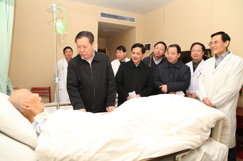 1月13日上午,省委常委、副省长余欣荣、省委常委、省纪委书记王宾宜等一行组成慰问团,代表省委、省政府来院看望住院的老干部。安医大党委书记李俊、常务副校长江敏、医院领导梁朝朝、余永强、刘全礼、王润玲、鲁超、费广鹤、李家斌等陪同慰问。