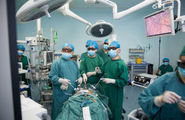 16日上午9点开始第二天手术演示,首先由主会场大屏幕上首先出现的是由梁朝朝教授主刀的“达芬奇机器人前列腺癌根治术”,展示了达芬奇机器人在保留前列腺癌病人性神经方面的优势及相关手术技巧,机械手臂在一伸一展之间完成了前列腺的切除过程。会场两侧的屏幕上也先后转播了我院泌尿外科多位专家的手术视频。在泌尿系肿瘤手术方面,方卫华教授演示了高清腹腔镜肾部分切除术,施浩强教授完成了高清腹腔镜全膀胱切除术+回肠膀胱术及高清腹腔镜下肾上腺肿瘤切除术,周骏教授完成了3D腹腔镜肾癌根治术;在经尿道手术方面,张贤生教授完成了经尿道精囊镜检查术及经尿道绿激光前列腺气化术,叶元平教授完成了经尿道等离子前列腺切除术、张翼飞教授分别完成了前列腺扩张术及经尿道绿激光前列腺剜除术;在泌尿系结石微创手术方面,刘明教授完成了经皮肾镜碎石取石术;郝宗耀教授和樊松副教授各完成一例输尿管软镜钬激光碎石术;江长琴副教授演示了TOT术。手术直播过程中,术者为会场代表详细讲解手术过程,并回答代表们提出的问题,至16日下午3点,24台手术全部顺利完成。