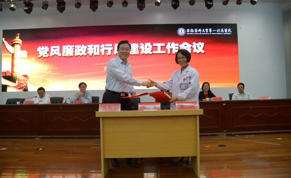 院党委书记梁朝朝分别与党总支书记、职能处室负责人、临床科主任代表签订《党风廉政建设责任书》。