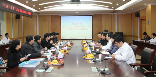 院党委书记梁朝朝代表医院致欢迎词,院长余永强作专题汇报,汇报会由我院副院长金小干主持,医院相关职能处室负责人参加会议。