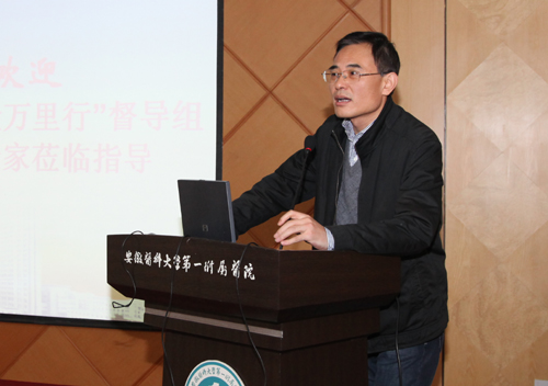 12月8日,省卫生厅专家组来院检查指导2011年度“医疗质量万里行”、“三好一满意”活动。检查组由卫生厅医政处副处长吴振宇带队,蚌医一附院副院长张玉山等专家组成。