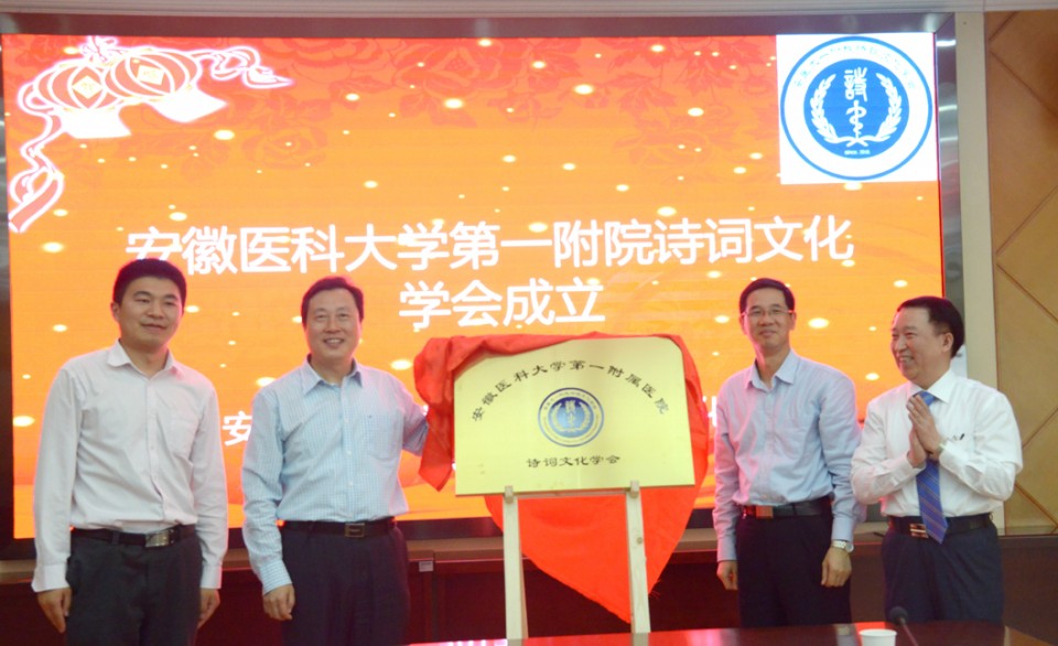 为了加强医院文化建设,展示安医人良好的综合素质和精神面貌,4月30日医院诗词文化学会正式成立。院党委书记梁朝朝、党委副书记戴晓支、安徽大学文学院院长吴怀东教授、中国诗词大会安徽代表王记波先生和我院20余名诗歌爱好者出席了成立大会,会议由党委副书记戴晓支主持。成立大会上宣布第一届诗词文化学会由党委书记梁朝朝担任名誉会长,颜雨春教授担任会长,党委副书记戴晓支和宣传部部长吴鹏伟担任副会长,杨光云和王异同志担任秘书。