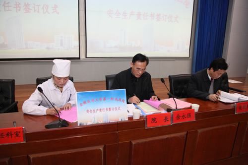 12月9日下午,医院在会议中心举行安全生产责任书签订仪式,院长余永强与临床、医技科室负责人、相关处室负责人代表签订安全生产责任书。全院科级以上干部、临床医技科室主任、护士长等300多人参加。