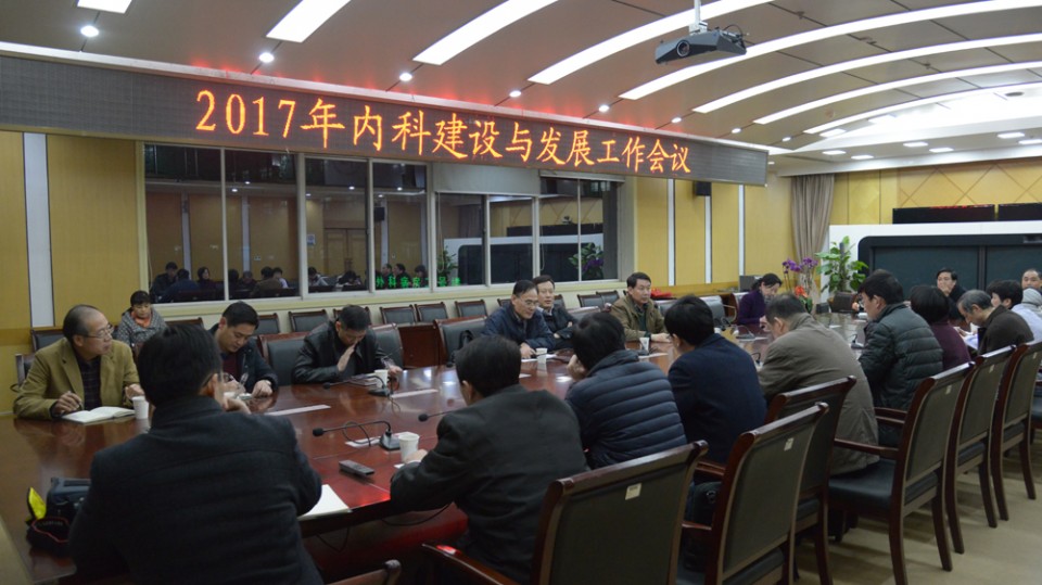 院长余永强在讲话中指出,内科是医院最基础的支撑学科,近年来我院大内科在继承传统优势的基础上,做了许多工作,形成了各具特色的重点学科,整体实力较强,但仍然存在一些问题。目前,专科发展除了受到空间、规模等各方面因素的限制,最重要的还是人才问题。随着医改的全面深入,医院想要可持续发展,就必须充分利用优势专科的综合实力,采用MDT等多种形式,开展教学查房、讲座等,尽快提升年轻医生的能力和素质,培养骨干力量。同时作为省内最大的教学医院,我们要把目光长远,选取更高标准的参照对象来做好顶层设计。余永强强调,医院将在经费保障等各个层面全力支持内科发展,各职能部门也要充分发挥服务于临床的作用,调动大家的积极性,支持有希望的学科大力发展。