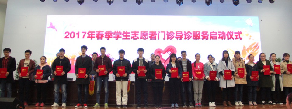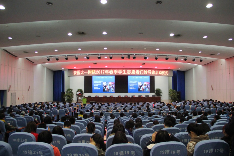 3月16日,医院举行2017年第一临床医学院学生志愿者门诊导诊服务启动仪式。院领导戴晓支、杨秀兰到会并讲话,一附院门诊部主任李维荣、第一临床医学院学生党总支副书记刘从云、薛磊等出席,本次门诊导诊700余位学生参加仪式。会议由院团委书记黄尧主持。 院党委副书记杨秀兰、戴晓支在会上先后讲话,他们首先向上一期门诊导诊志愿者表示感谢,正是他们利用课余时间、节假日时间肩挎绶带,穿梭在门诊各服务区域,帮助患者提高了就诊效率,并希望新一批的志愿者向他们学习。二位领导还深情回顾了近3年来“爱心驿站”开展的社会公益实践活动,在志愿服务活动中回馈社会、提升自己,分享经历、收获快乐。他们要求同学们安排好学习和志愿服务的时间,做到两不误互促进,对做好志愿服务工作提出了几点要求,一是要培育志愿服务文化;二是要乐于奉献,用心打造安医名片;三是要善于创新,努力发挥青年优势。