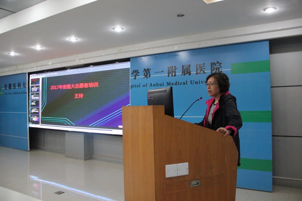 超声波室主任王玲、生殖医学中心蒋欢欢分别从科室基本情况、就诊流程、各岗位职责、工作细责和医患沟通技巧等方面对志愿者开展培训。