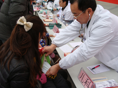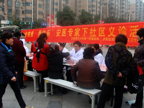 2011年12月21日下午,根据我院对口支援杏林社区卫生服务中心协议要求,我院安排了九名专家在大润发凤台路店广场上举办“你健康,我快乐--安医专家下社区义诊活动”,安医呼吸内科、心内科、神经内科、内分泌科、儿科、眼科、普外科、皮肤科九个科室的资深医师不惧严寒,亲临义诊现场,为社区居民答疑解惑,给附近居民带来了一次“在自家门口免费看名医”的体验。