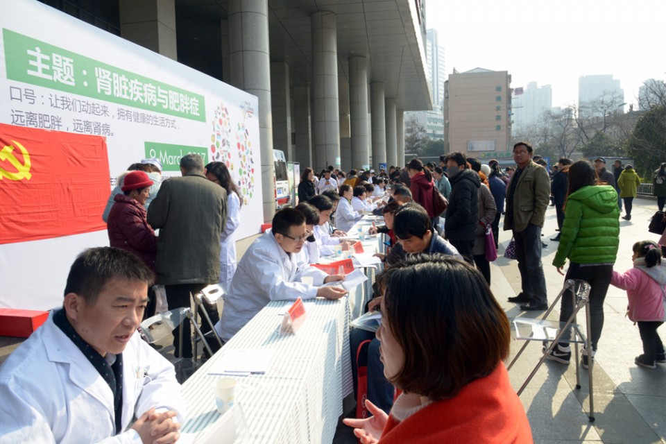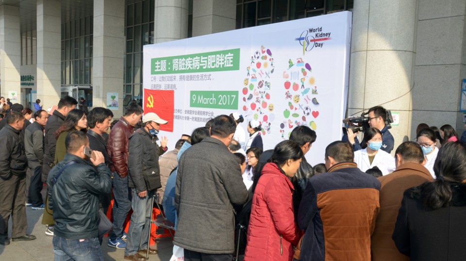 3月9日是第十二届“世界肾脏日”,安徽省医学会肾脏病学分会组织的“关注肥胖 远离肾脏病”大型义诊活动在我院绩溪路门诊广场如期举行。