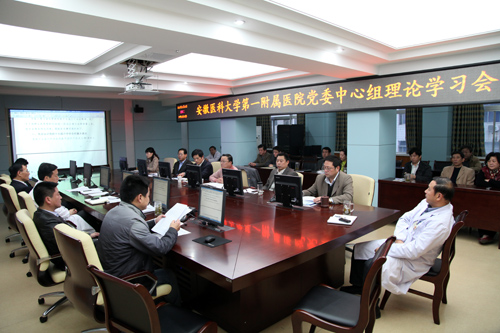 11月15日下午,医院在行政楼第二会议室举行党委中心组学习,院领导梁朝朝、余永强、刘全礼、金小干、王润玲、尹宗生、鲁超、费广鹤、李家斌及各职能处室负责人参加了学习。
