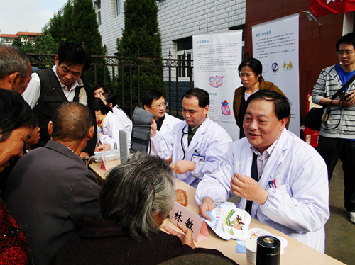 11月5日,我院心脏病专家林敏、史学功来到合肥市长丰县造甲乡,参加台盟安徽省总支部委员会、安徽省台湾同胞联谊会共同举办的“同心工程,走向健康”活动,为当地群众义诊。