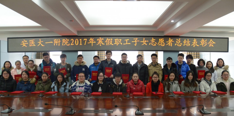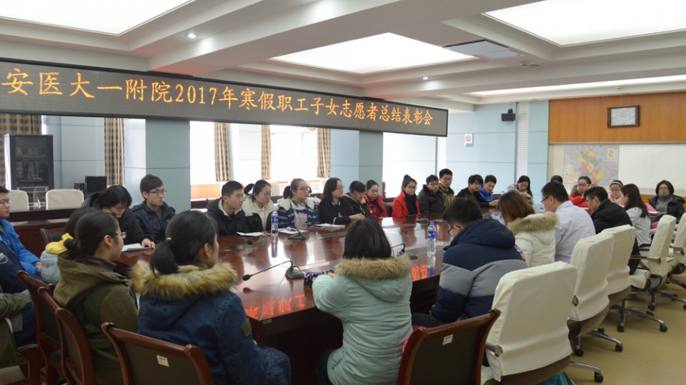 2月10日,医院召开2017年寒假职工子女志愿者服务总结表彰会。党委副书记戴晓支出席会议并讲话,部分院团委委员及职工子女志愿者30余人参加了会议。会议由团委书记黄尧主持。会上简要回顾了2017年职工子女志愿者寒假志愿服务情况,共有31位志愿者参与门诊导诊、儿科输液厅及儿康病房等岗位服务,志愿服务时间321小时,部分志愿者在年三十至年初二期间仍然坚持工作。