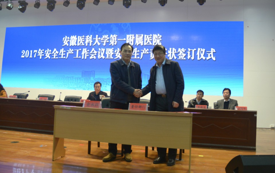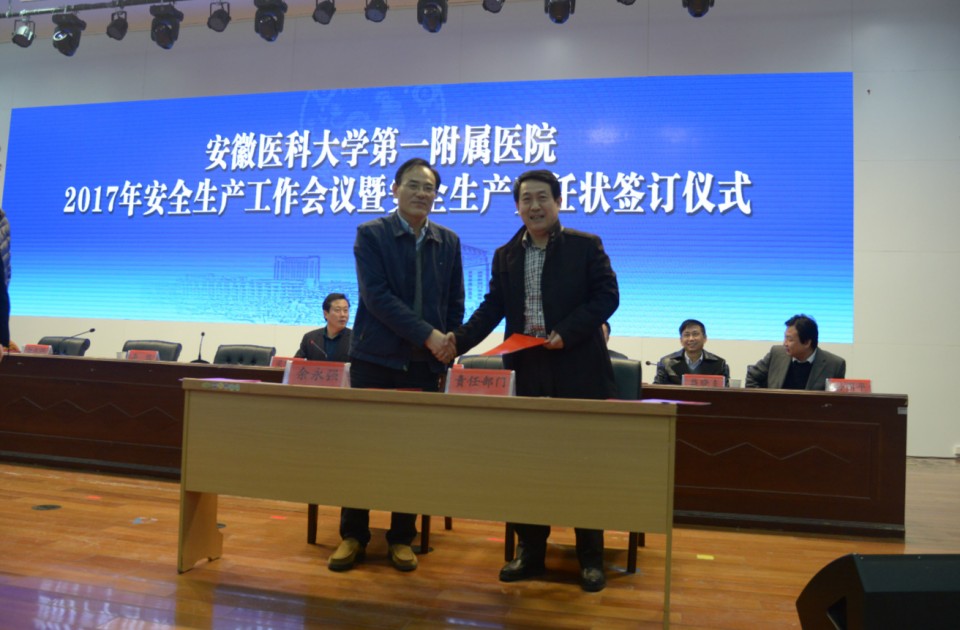 随后,院长余永强与职能处室、科室病区代表现场签订了2017年《安全生产责任书》。