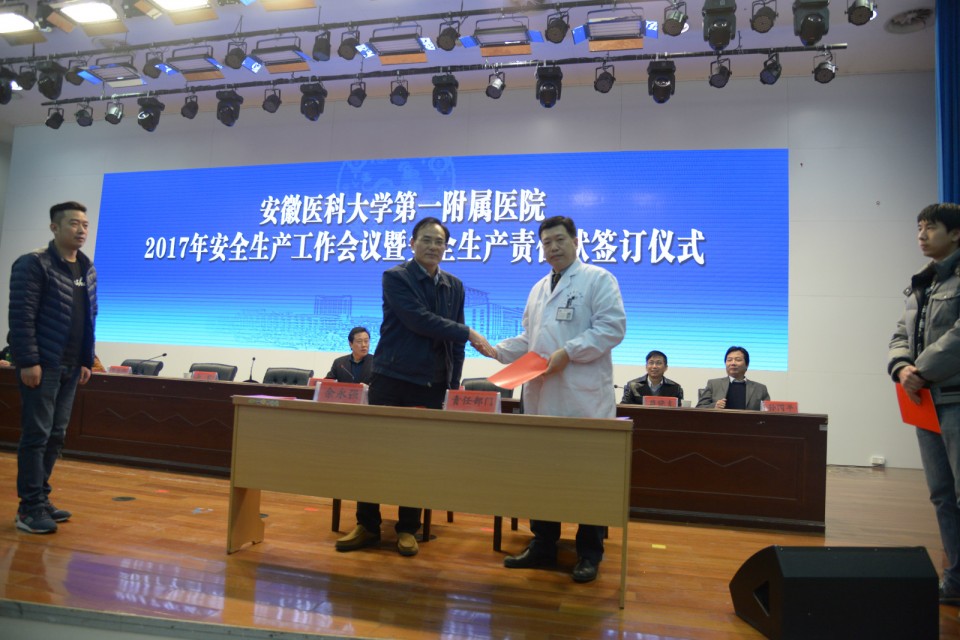 2月16日下午,医院在会议中心召开2017年安全生产工作会议暨安全生产责任状签字仪式。院安全生产委员会全体成员、各处室、科室、病区主要负责人及各病区护士长参加,会议由院党委书记梁朝朝主持。