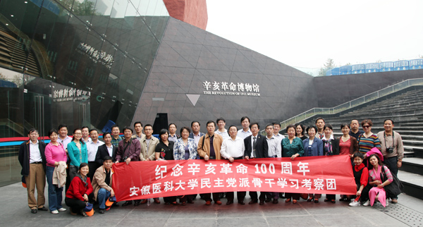 为纪念辛亥革命100周年,由安医大组织的学校各民主党派骨干学习考察团,10月22日-23日赴湖北武汉,怀着对无数革命志士的崇高敬意,怀着对伟大革命先行者孙中山先生的深切缅怀,参观辛亥革命纪念馆、辛亥革命博物馆。