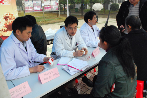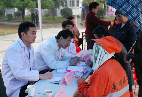 10月29日上午,细雨绵绵。医院普外科李永翔博士、心内科曹海学副主任医师、骨科王伟主治医师冒雨与安徽生活广播台一道,赴合肥市包河苑小区开展“走进社区、服务民生”活动。在两个多小时的时间里,专家们认真接受社区居民的健康咨询,耐心解答疾病问题。社区居民们对专家一行冒雨进社区服务给予了高度评价。