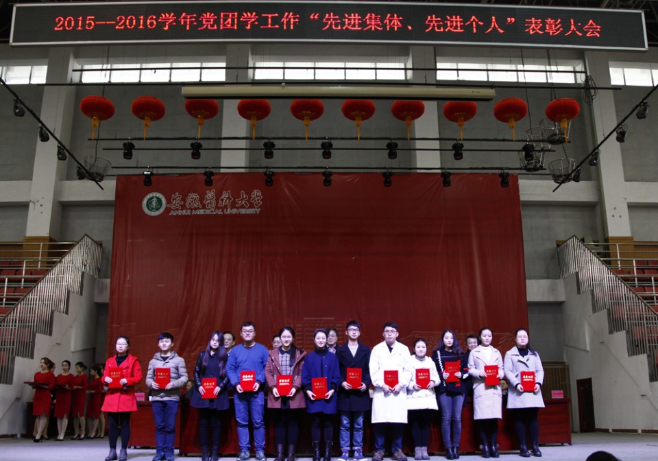 12月23日,安医大举行2015-2016学年度党团学工作“先进集体、先进个人”表彰大会,一附院第27团支部阎同传作为校级“优秀团支部”的代表接受了校领导颁奖。校党委书记李俊同志出席大会并讲话。校党委在表彰决定中指出,全校广大团员青年以党的十八大精神为统领,紧密围绕学校的中心工作,在思想建设、组织建设、校园文化活动、学术科技创新活动和社会实践与志愿服务等方面,创造性地开展了大量的工作,取得了很大的进步,综合素质普遍提高,涌现出一大批先进集体和个人。希望受表彰的个人和集体珍惜荣誉,再接再厉,再创佳绩,取得更加优异的成绩。号召全体团员青年向他们学习,贡献自己的青春和力量。