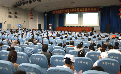 2011年“世界骨质疏松日”的主题为“关爱你的骨骼,早期预防三步走---运动,维生素D及钙剂”,10月12日,医院“卫生部骨质疏松症诊疗技术基地”创建工作小组组织内分泌科、骨科、营养科、康复科、妇产科等专家在绩溪路门诊广场举行骨质疏松日大型义诊活动,免费检测血糖和骨密度,提醒广大市民提高对该疾病的重视,及早预防,密切监测,活动赢得市民的广泛赞誉,省市多家媒体对活动进行了现场报道。