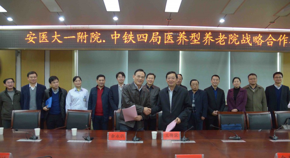 12月8日下午,医院与中铁四局医养型养老院战略合作签订仪式在干二楼会议中心举行。院领导梁朝朝、余永强、金小干、王润玲、费广鹤、周典及相关职能处室负责人、中铁四局总经理王传霖一行等出席签字仪式。据悉,本次战略合作旨在积极响应国家和省卫生与健康大会相关精神,积极落实公立医院改革的相关要求及健康中国、健康安徽的发展理念。根据协议,合作双方优势互补,深入合作,合力推进健康养老服务体系建设。