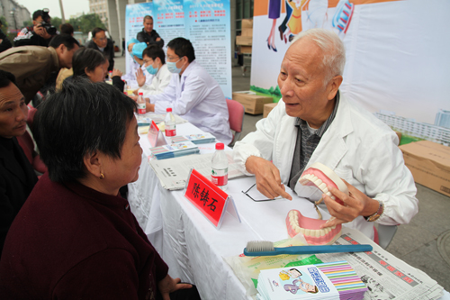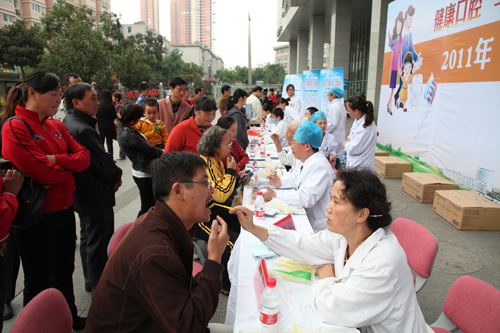 今年9月20日是第23个“全国爱牙日”,主题为“健康口腔,幸福家庭”,副主题为“呵护孩子,预防龋齿”。为了更好地宣传口腔卫生知识,9月20日,由安徽省卫生厅疾病控制局、安徽医科大学第一附属医院、安徽省卫生厅口腔卫生中心联合举办的2011年“全国爱牙日”大型义诊活动在我院绩溪路门诊广场举行。安徽省卫生厅厅长高开焰一行亲临现场慰问参加义诊的医务人员,医院党委书记梁朝朝,院长余永强,医院口腔医学专家、安徽省口腔卫生领导组常务副组长颜雨春及相关职能处室负责人陪同。