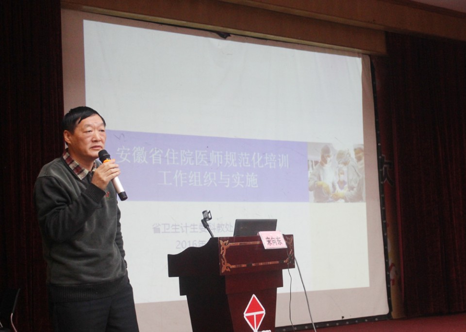 为进一步提高住院医师规范化培训师资的临床带教能力与师资队伍的整体水平,2016年12月11日,由医院承办的“2016年中央财政补助住院医师规范化师资培训班”在合肥开班。省卫计委科教处处长宋向东、医院院长余永强教授等出席开班仪式并讲话,来自全省各地市17家住培基地的150余名师资学员参加了培训。