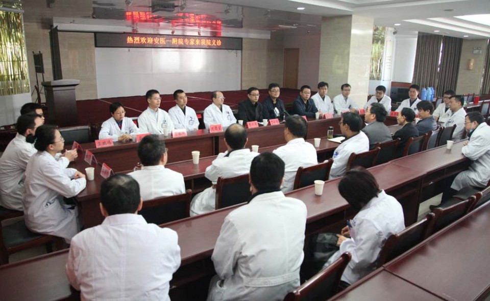 11月5日上午在怀宁县人民医院,专家们深入科室病房,进行教学查房和病例讨论,普胸外科、消化内科专家还做了专场的小型学术讲座。查房和讲座后,专家在门诊诊室接受患者的疾病咨询和诊断,现场义诊200多人次,深受到当地群众和政府的欢迎和好评。