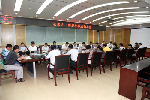 8月30日下午4点,在医院干部二楼会议室召开了院第四届职代会执委会第十次会议,院党委书记梁朝朝参加会议并发言,副院长金小干、鲁超及全体职代会执委参加会议,院纪委书记刘全礼主持会议,会上就高新医院建设及营养综合楼改造等情况进行了讨论。