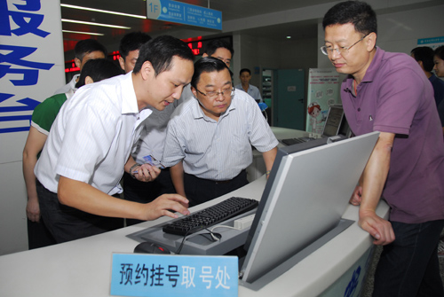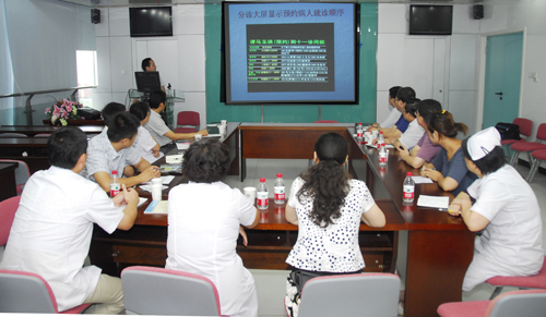 会后,与会人员还到绩溪路门诊一楼预约挂号接待处、各分诊服务台及医生工作站现场体验了预约挂号的各个流程,亲身感受到门诊预约挂号系统启动给患者带来的方便快捷。
