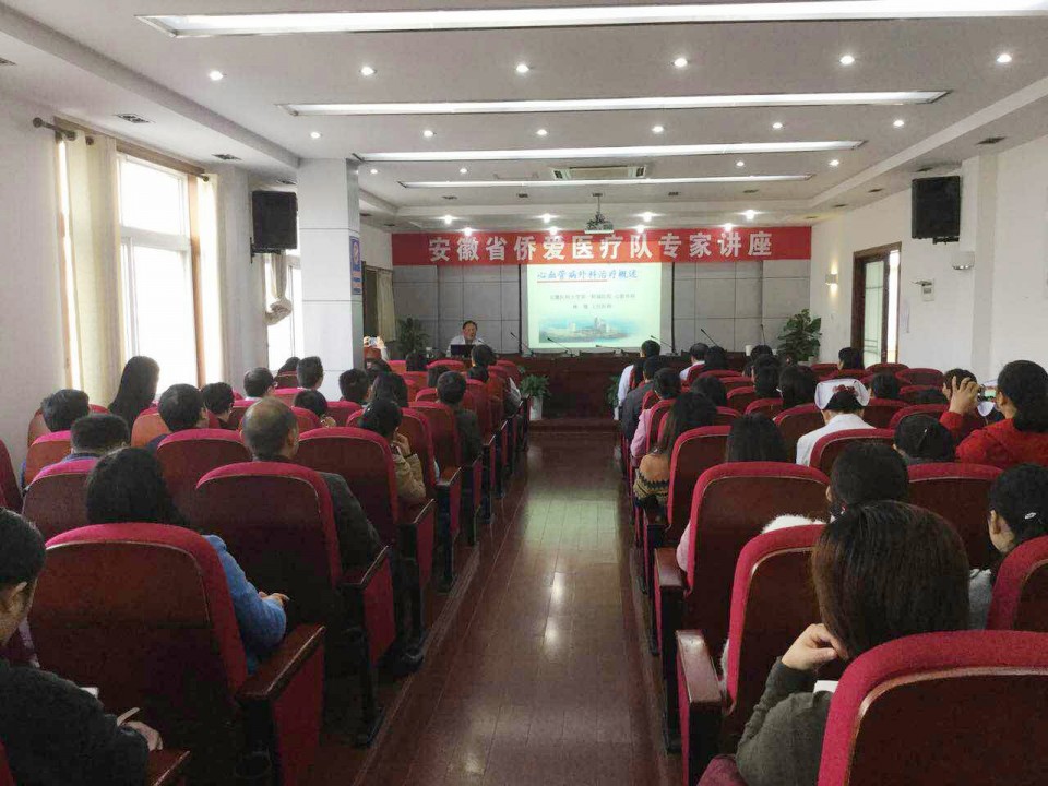 20日上午,启动仪式在宿松县人民医院举行。我院还为宿松县基层老百姓捐赠了6箱建院90周年“爱心小药箱”。随后,该院各科的医生立即与专家“一对一”对接,随即进入各个科室,为慕名前来看病的患者进行免费坐诊和会诊,并耐心解答患者提出的疑难问题,同时还进行了带教、查房和病例讨论。在此期间,“江淮名医”韩晓兰还为患者做了一例示范手术;林敏、李俊、孙旭群3位专家先后为200多名医护人员作了3场医学讲座……精彩纷呈。活动持续约3个小时。在大家的共同努力下,共接待门诊患者300人次,查房诊断患者200余人次,受到当地老百姓的热烈欢迎,取得了良好的社会效果。
