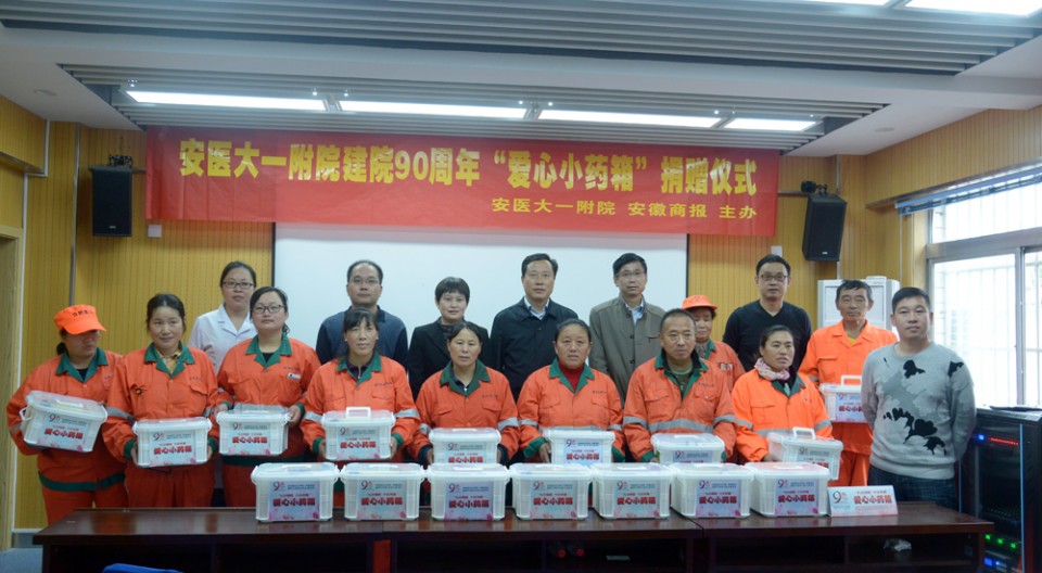 10月21日,在合肥市第21个环卫工人节来临前夕,我院与安徽商报联合开展的“爱心小药箱”捐赠活动,将首批20个小药箱送到了包河区环卫工人的手上。