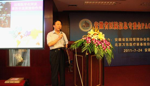 为加快推进我省卫生信息化建设,近日由安徽省医院协会信息化专委会举办的“安徽省医院PACS & T-MS临床应用”专题研讨会在肥举行。安徽医科大学常务副校长江敏、省卫生厅副巡视员王宇铭、安医大一附院副院长鲁超到会致辞讲话。省卫生厅信息中心主任张为民作了卫生部“十二.五”信息化规划和安徽省医院PACS建设实施方案解读,