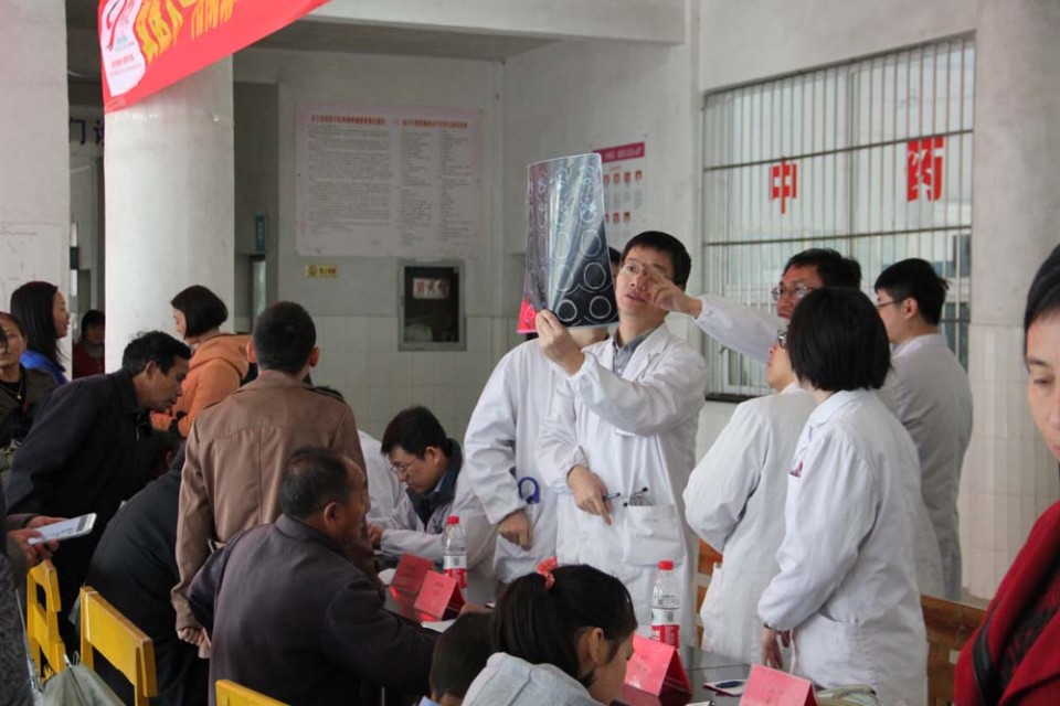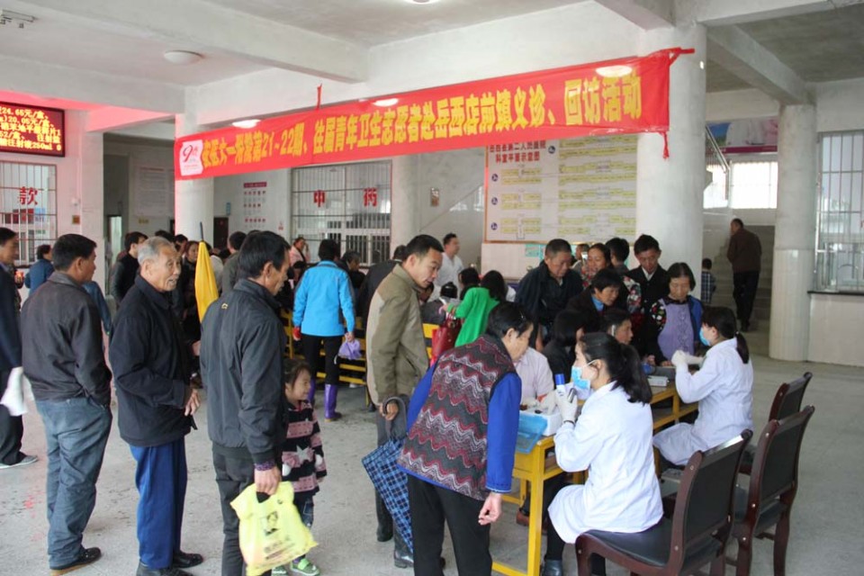 10月28日-29日,院党委副书记戴晓支率队赴岳西县店前镇开展义诊、捐赠等帮扶活动。本次活动主要有我院第21期、22期及部分历届青年卫生志愿者和团干部、团员积极分子参加。在义诊活动中,各位青年卫生志愿者克服方言不通、交流不便的难题,耐心地询问着每一位前来问诊的患者,仔细地为患者叩诊查体,查问病史,根据患者实际病情制定合理的治疗方案。义诊中,内分泌科左春林同志在接诊中,通过查体及时发现了一例高危心脏病患者,立即转接至卫生院紧急治疗。多位青年卫生志愿者还在现场对多名患者进行了多学科会诊。年轻的团员积极分子们则为前来问诊的患者测量血压、血糖,检测血型,开展分诊,指引患者前往相应的专家处就诊,同时发现异常值及时联系专科医师接诊。虽然当天店前镇普降大雨,但是整个店前镇中心卫生院门诊大厅内人声鼎沸,患者络绎不绝,十里八乡的群众纷纷赶来请省城大医院的专家诊治,甚至有家长带着患儿赶到驻地,请求青年卫生志愿者诊治。