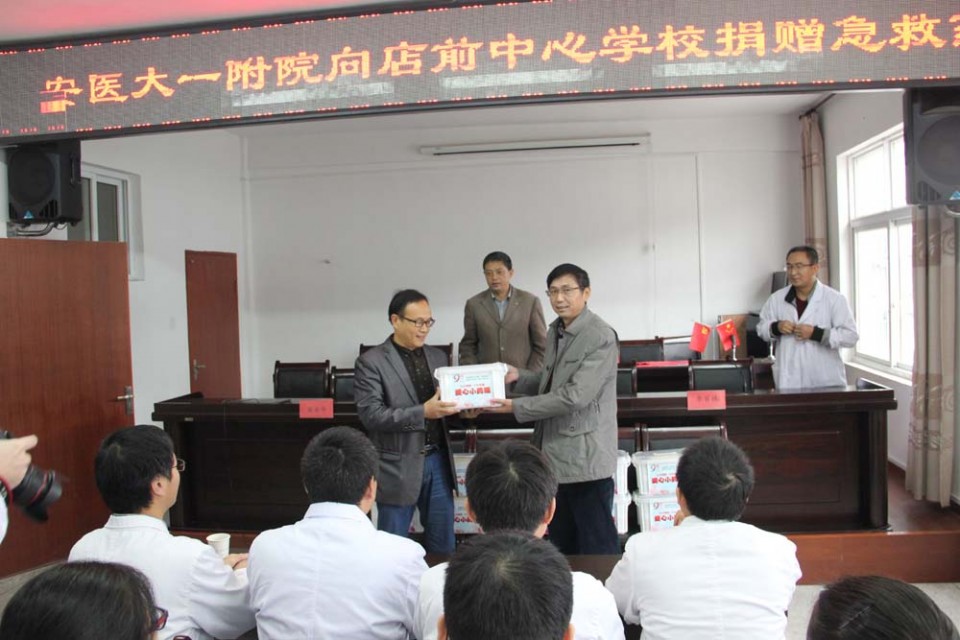 29日上午,医院向店前镇的学校捐赠了建院90周年“爱心小药箱”。院党委副书记戴晓支、店前镇副镇长姚峰、中心学校校长蒋永华及镇卫生院副院长李百林出席了捐赠仪式。在仪式上,戴晓支介绍了2016年医院建院90周年庆祝系列活动的简要情况,他指出,今年院庆的主题及时回报社会公益活动,本次向店前镇的学校捐赠药箱,为山区学生的健康保健送上关爱,包含了我院广大医务人员对山区群众的回馈之心。同时,青年卫生志愿者长期坚持在店前镇开展卫生扶贫接力活动,也是医院长期坚持一项公益事业,青年卫生志愿者们要为店前镇及周边百姓的健康贡献自己的力量。店前镇相关领导随后感谢我院各级领导和医务工作者对店前人民的关怀,表示爱心小药箱的到来是雪中送炭,解决了在校学生日常急救的问题。