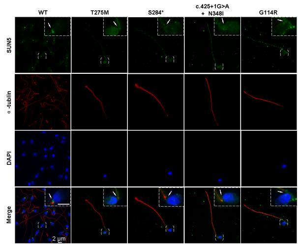 该医院生殖医学中心、生殖遗传学研究所及安徽省生命资源保存与人工器官工程技术研究中心曹云霞团队对此进行了科技攻关。朱复希博士为主导的男科研究组首先在17个家系中发现了其中8个家系中存在SUN5基因的纯合或复合杂合突变,共发现10个不同位点的突变。已知SUN5蛋白在睾丸中特异性表达,而在其他组织中几乎无表达;在成熟精子中SUN5特异性定位在头尾连接部位。之后,生殖医学中心课题组通过Western blot和免疫荧光实验比较正常人和几个患者成熟精子中SUN5蛋白的丰度及定位,证实SUN5基因突变导致患者成熟精子中该蛋白表达量显著降低甚至缺失,并影响SUN5蛋白在精子头颈连接区域的表达定位。该研究同时得到了安徽医科大学生命科学院、南京医科大学第一附属医院临床生殖医学中心以及澳大利亚阿德莱德大学医学院Gecz Jozef教授的积极参与及大力支持。