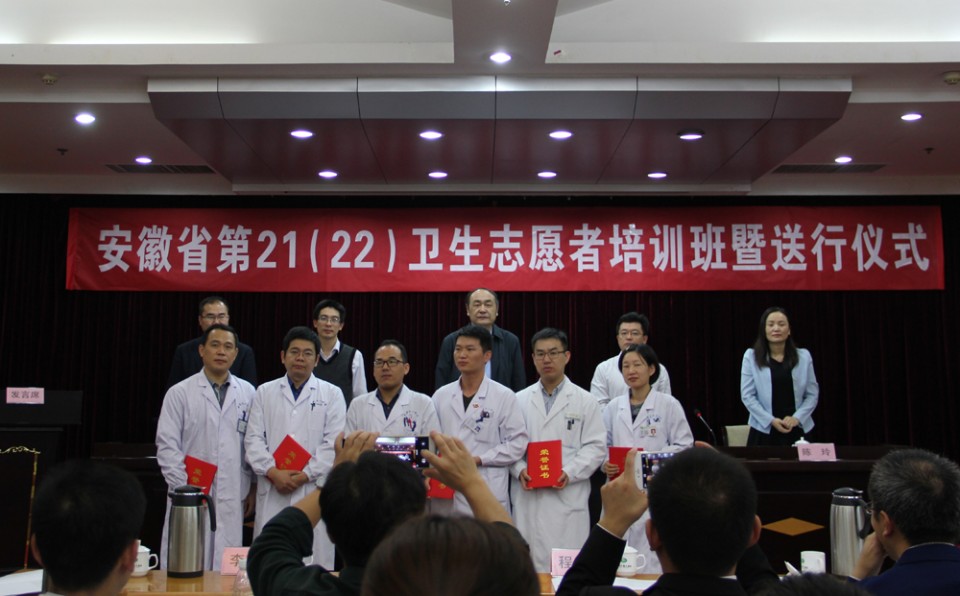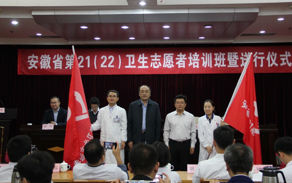 9月30日上午,团省委、省卫生计生委联合举行安徽省第21、22期青年卫生志愿者培训班暨送行仪式,我院第19、20期优秀青年卫生志愿者高潮兵、李韵松两位同志作为代表接受颁奖,第22期青年卫生志愿者吴兴旺代表全体志愿者接受省卫生计生委领导的授旗。(院团委 梁佳宁)