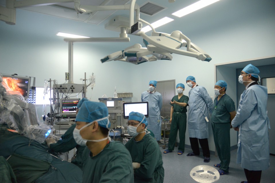 见面会结束后,德国专家参观了我院门诊部及急诊单元,随后前往手术室,参观了我院血管外科一台主动脉夹层腔内治疗手术和泌尿外科一台达芬奇机器人肾切除手术。我院专家精湛的手术操作给德国专家留下了深刻的印象,获得了高度称赞。