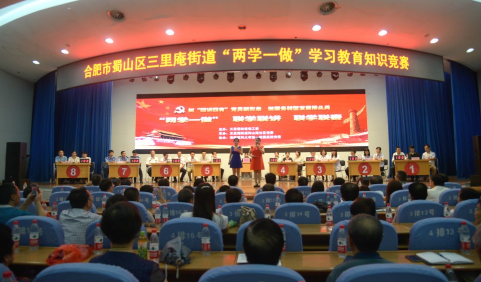 此次竞赛由蜀山区三里庵街道党工委主办,梅山路社区党委承办,辖区内多家单位共8支代表队参加。竞赛内容涉及知识面广,包括必答题、抢答题、风险题等环节。在竞赛中,我院代表队三名选手团结协作、沉着应答,展现了一附院党员扎实的理论素养和良好的精神面貌。现场气氛热烈、高潮迭起。