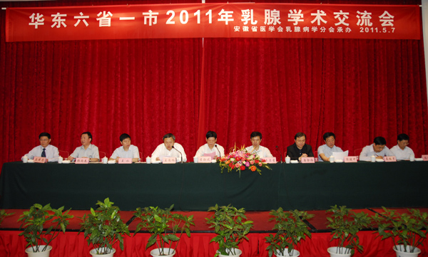 5月6-8日,由安徽医学会主办、我院承办的安徽省医学会乳腺病分会成立暨华东六省一市2011年乳腺学术交流会在合肥召开,安徽省卫生厅副厅长李劲风、医院院长朱启星、安徽省医学会秘书长王尚柏出席开幕式并讲话,江苏省人民医院副院长王水代表华东六省一市致辞。开幕式由我院乳腺外科主任王本忠主持。来自华东六省一市140余名代表参加了会议。