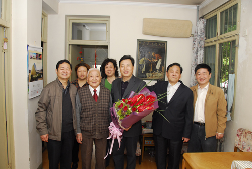 4月18日是我院眼科老专家陈端鑑的90寿诞,当日上午,副院长梁朝朝会同相关职能部门负责人和眼科科室人员登门为老专家祝寿,感谢陈端鑑老先生为医院建设特别是眼科领域的发展所做出的贡献,并恭祝福寿安康,安享晚年,同时代表医院送上了鲜花和蛋糕。