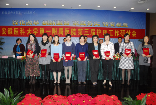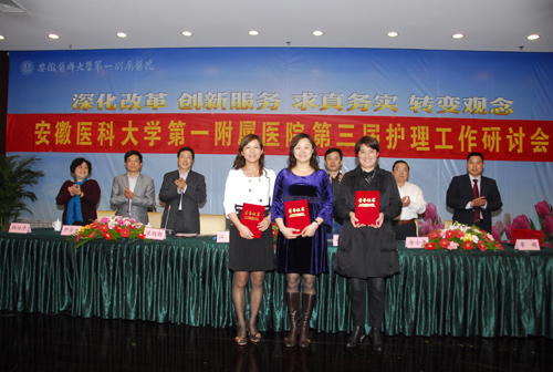 在闭幕式上,安医大常务副校长江敏和医院领导为第一批和第二批开展优质护理服务示范病房成绩突出的的科室给予表彰。