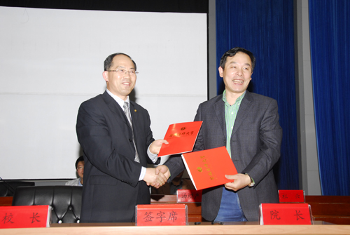 校长张学军与医院院长朱启星签订目标管理责任书