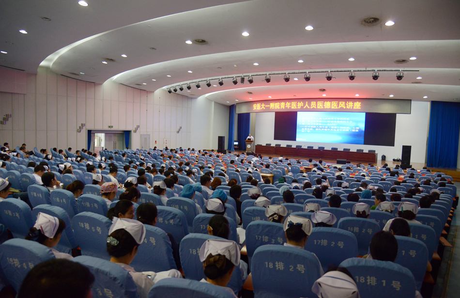 杨明功教授引用救死扶伤的医学警言,解读了校训、院训的深刻含义和崇高使命,阐述了新时期医德医风的新内涵、新要求、新任务。讲座中,杨教授和大家分享了他从医几十年来的工作体会,用翔实的事例和生动的语言启迪大家怎样做一名“本分、勤奋、诚恳、严谨”,让人民满意的好医生。
