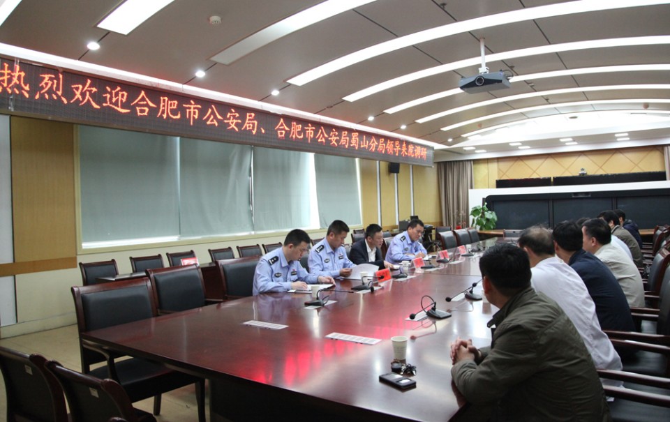 2016年5月11日上午,合肥市公安局蜀山区公安分局领导来我院调研。调研会议在干部保健中心楼2层会议室召开,合肥市公安局蜀山区分局局长钟磬、副局长王德军、副局长王宏乐、院党委书记梁朝朝、副院长金小干、副院长周典及相关职能部门负责人参加了此次会议。 会上, 双方就医院周边环境整治、院内治安、医患纠纷处置、维护正常医疗环境,保障医护人员人身安全等进行了座谈讨论,并形成一致意见。