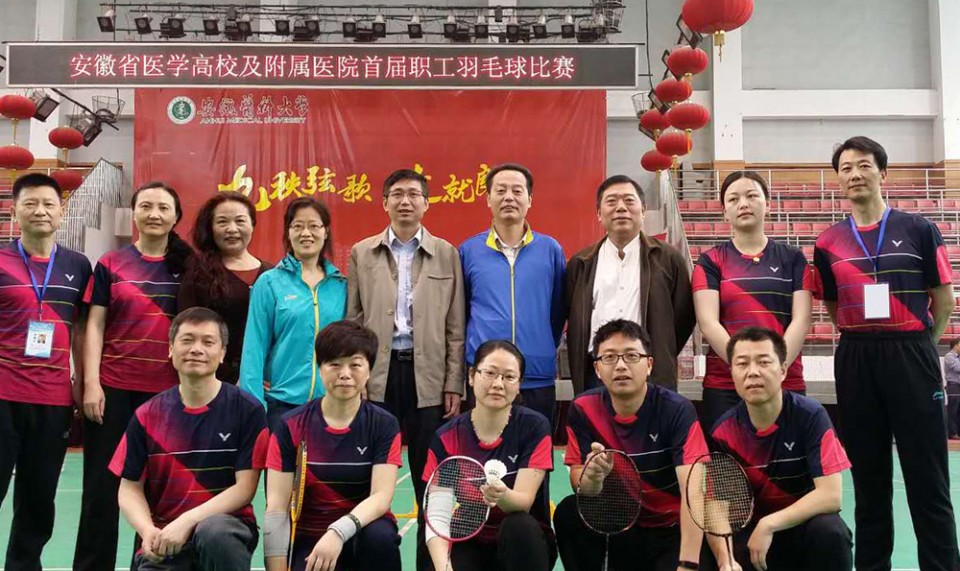 5月14日至15日,由安徽省教育工会和我校工会联合主办的安徽医学高校及附属医院首届职工羽毛球比赛在安徽医科大学体育馆举行。来自全省4所医学高校及10家附属医院共14支代表队参加了比赛。我院工会积极响应,组织动员并指导羽协认真选拨训练。大家以饱满的精神面貌参加比赛,奋力拼搏,赛出了风格、赛出了水平。经过两天的激烈角逐,我院羽毛球队斩获亚军。